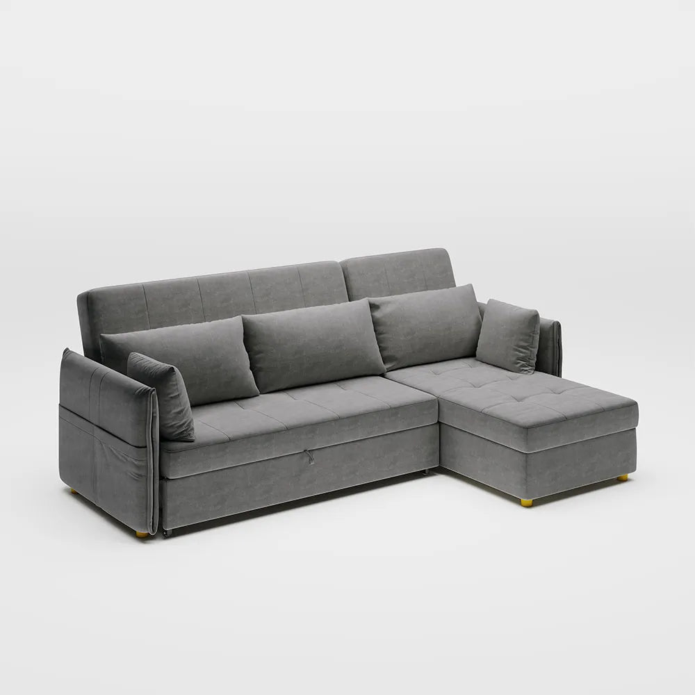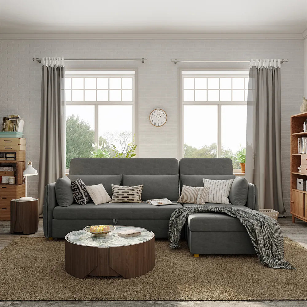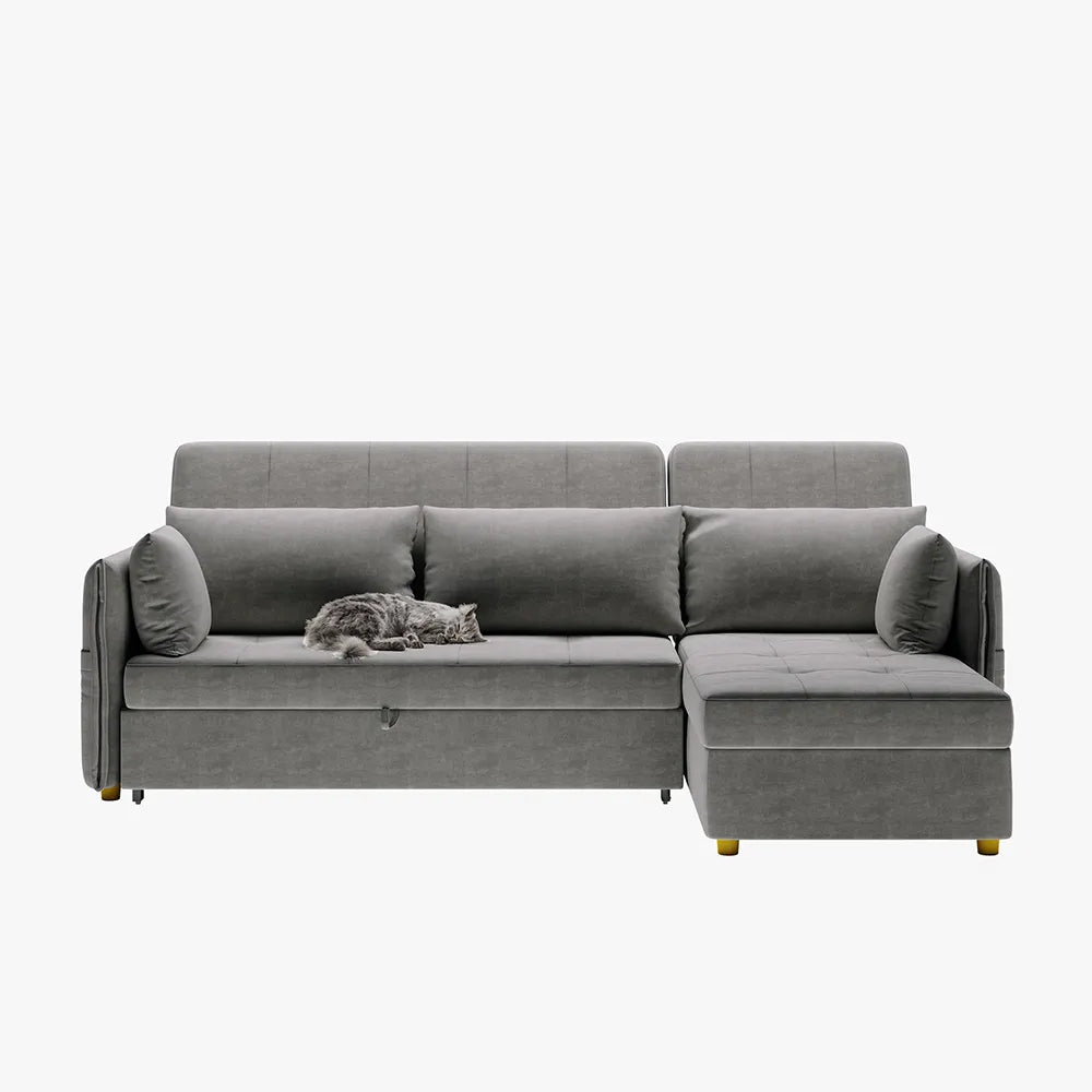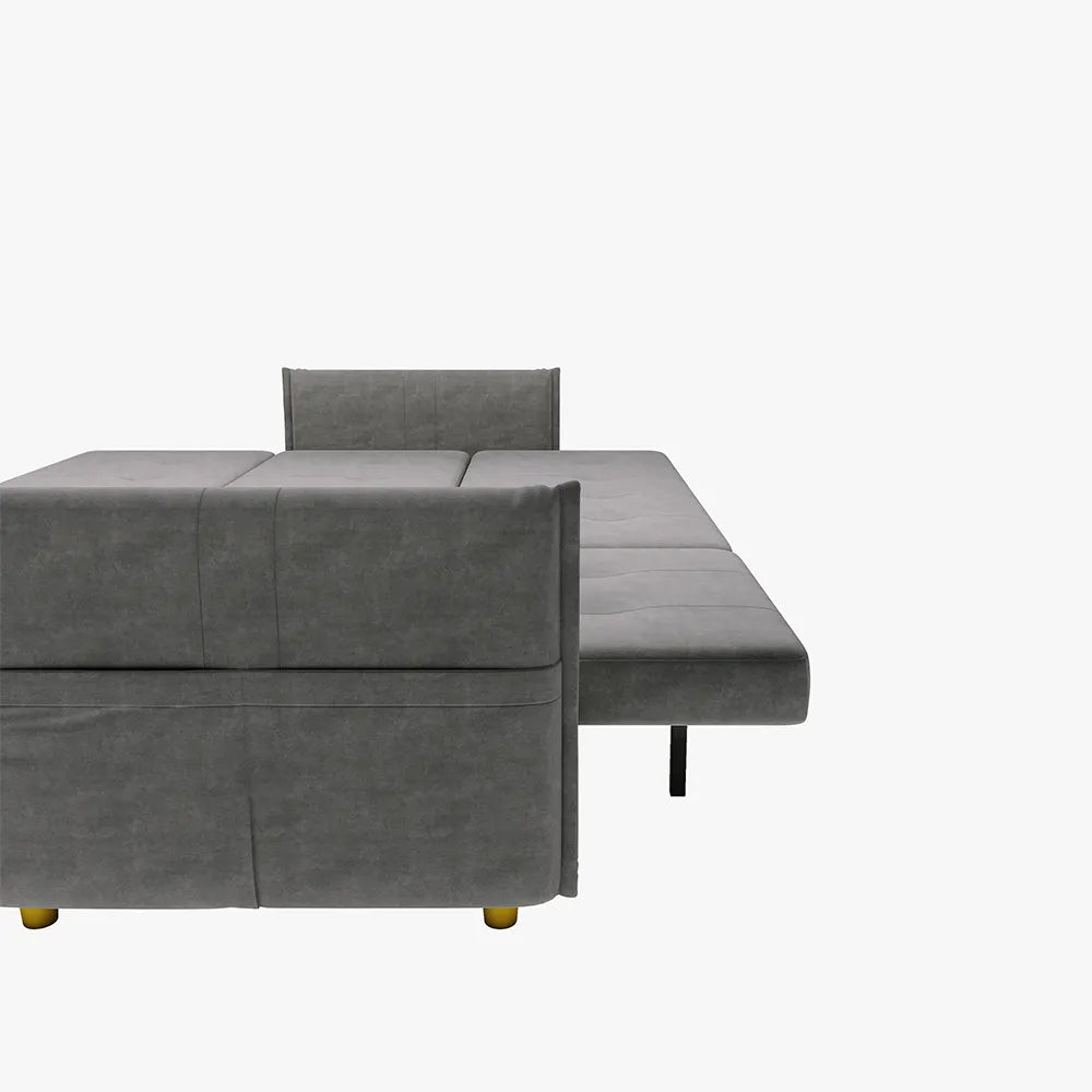 Sofa cum bed with multi functionality like pullout+ storage + Fold out in a chic grey color is the perfect space-saving solution for your home. This versatile piece easily converts from a comfortable sofa to a convenient bed, offering flexibility for guests or lounging. Crafted with style and functionality in mind, its modern design and neutral color seamlessly blend into any decor. Elevate your living space with the Mabel Fold Out Sofa cum Bed, where comfort and practicality meet sophistication.