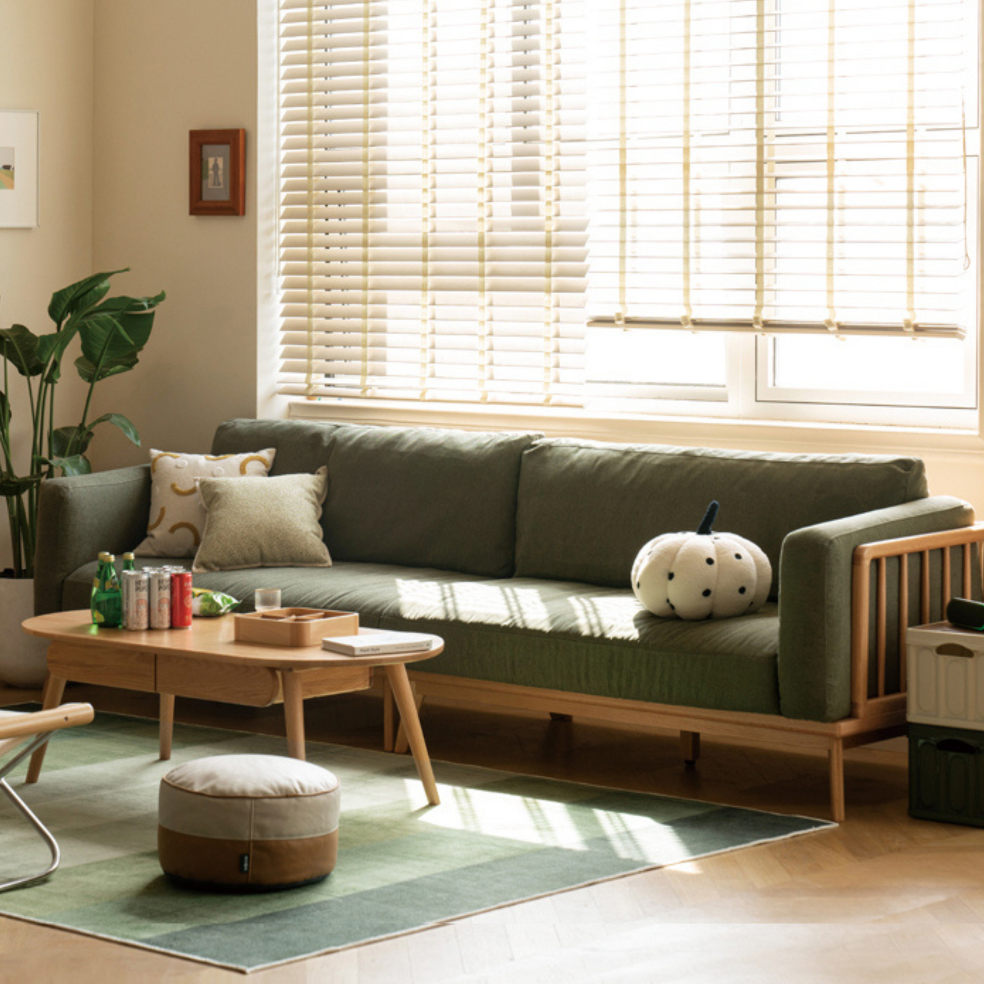 Japanese-style log style sand hair creates a warm and healing living room!The "calm" impression brought about by the change of the solid wood sofa, the stringed armrests and backrest are more refreshing and agile, and the dense and consistent wooden strips are all made of hard imported wood. Visually, it looks transparent and stable. Please note: Due to the bespoke production required for large furniture, your order is estimated to deliver in 6-8 weeks.