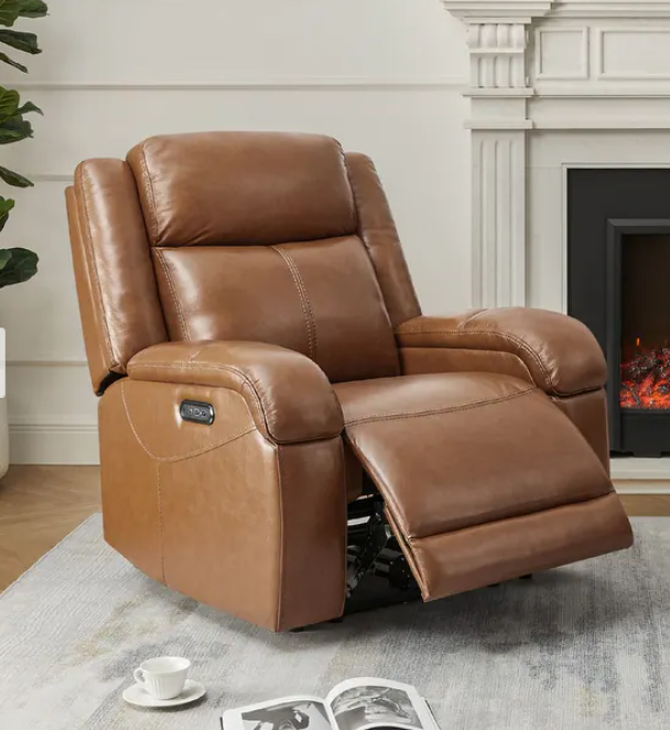Experience ultimate relaxation with the high GSM PU leatherette Power Recliner. Enjoy customized head and neck support with the power headrest feature. Built-in USB & Type-C charging ports add convenience. Easy to clean and assemble, this wall hugger power recliner chair is a must-have for those seeking comfort and style.