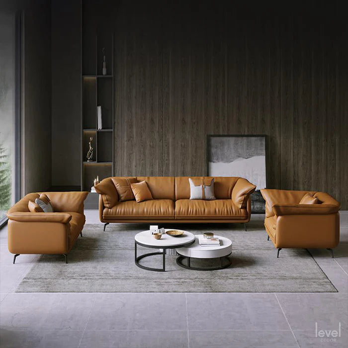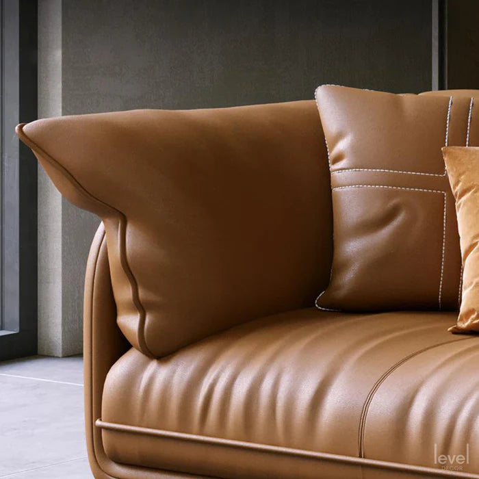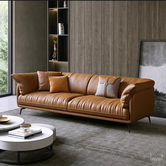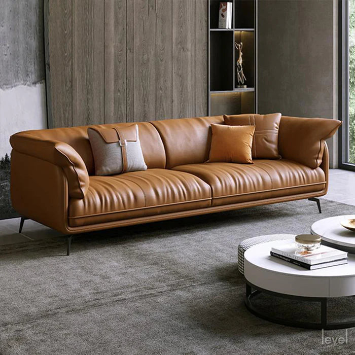 The Canvas modern Sofa feels as luxurious as it looks: down-wrapped back cushions offer sink-right-in comfort and it comes covered in soft genuine leather. Though intended for your living room, the solid frame is durable enough for even commercial settings.