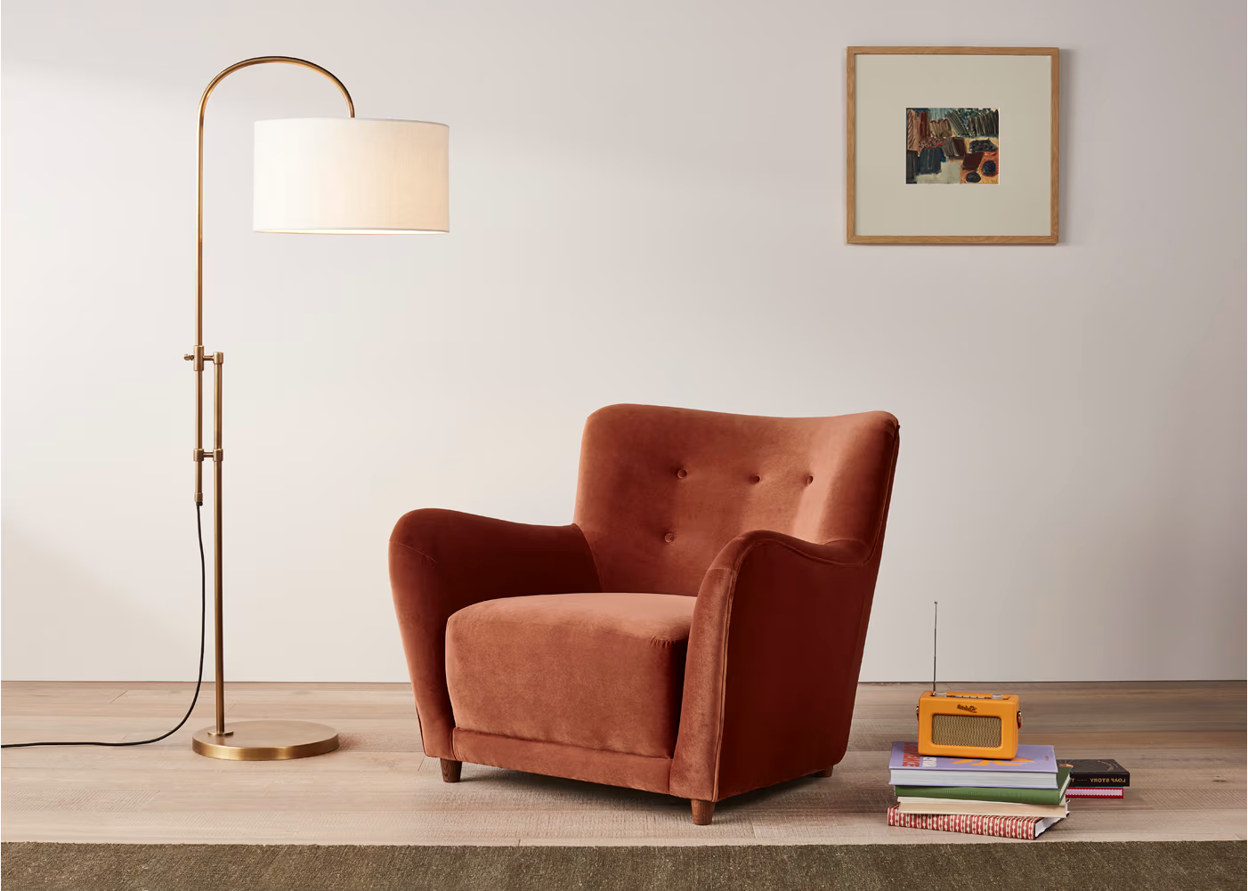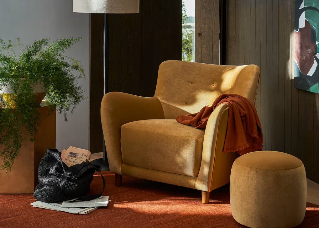 Our comfort-maxed version of a Danish-inspired design, covered with the softest shearling for ultimate cosiness. Handmade with an addictively deep seat, plump-free cushion and mid-century curves for a statement making shape.