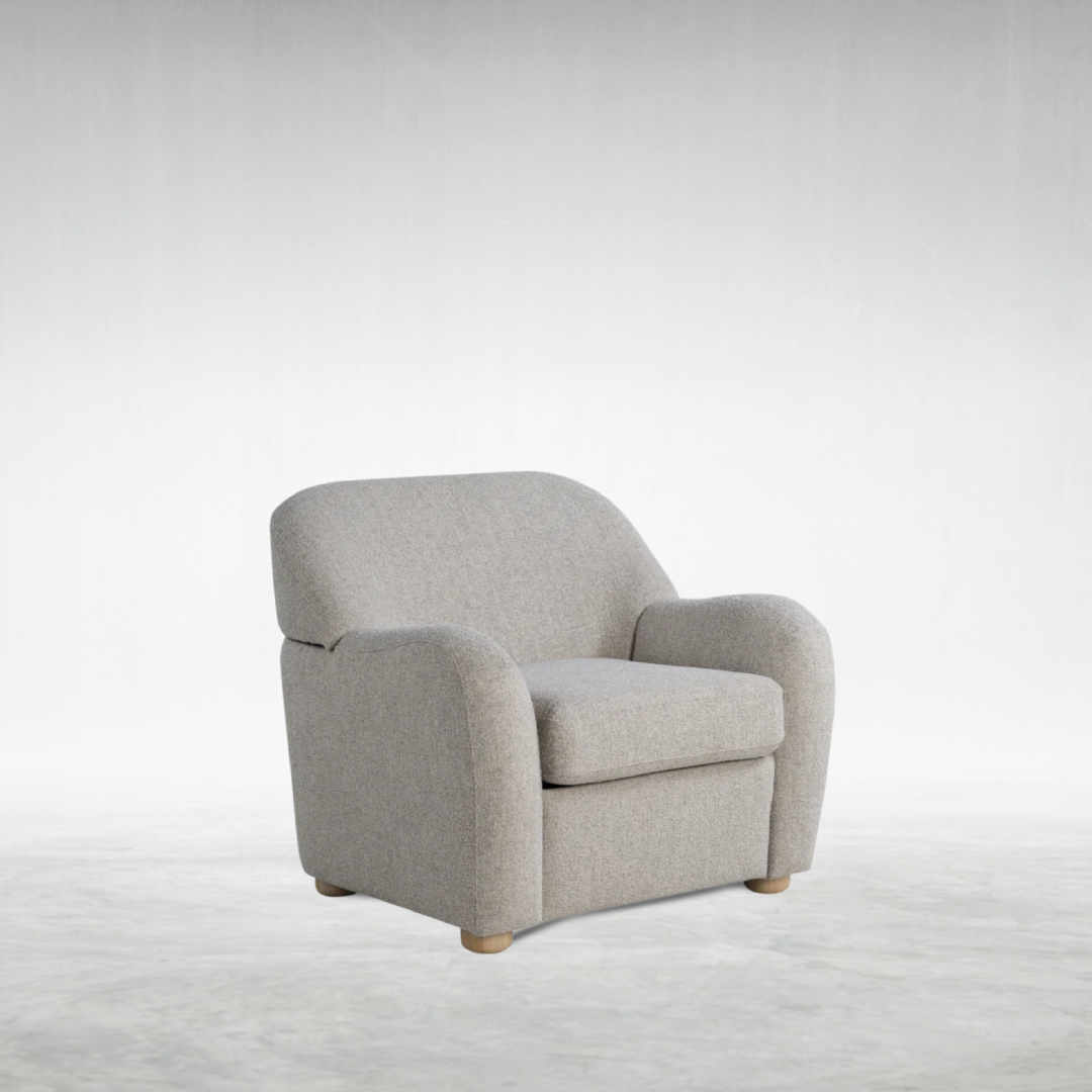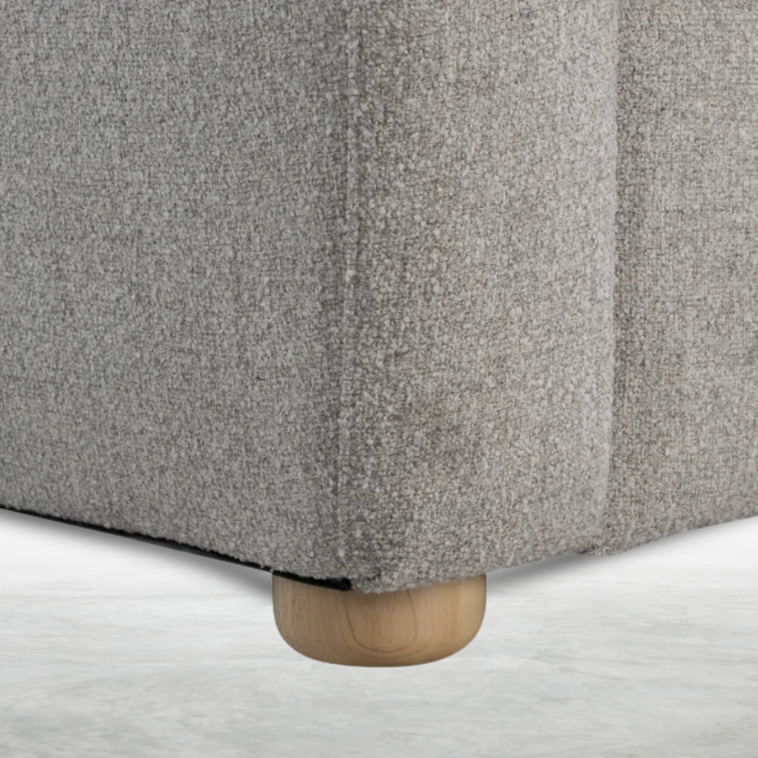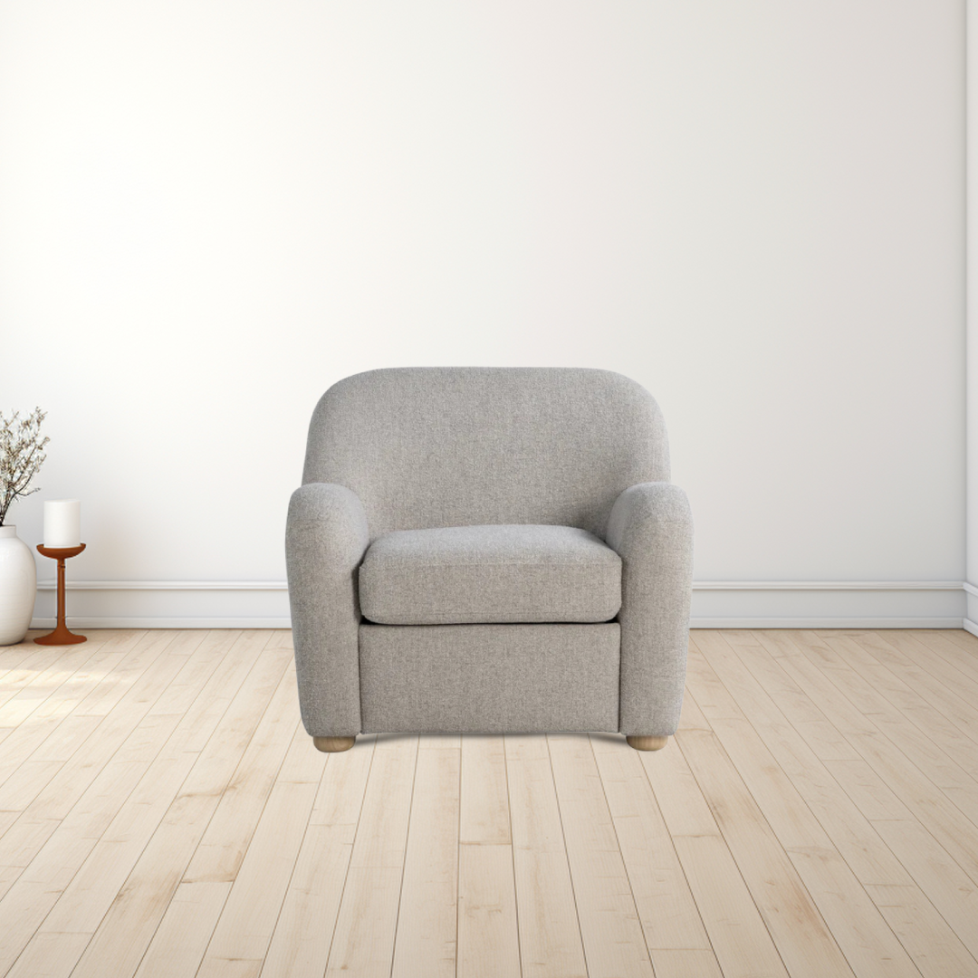 Elevate your space with the Emily chair, blending soft modern design with everyday practicality. Upholstered in cozy boucle polyester fabric, it offers luxurious texture and lasting comfort. The pocket coil seating and high-density foam cushions provide support you can sink into, while the removable seat cushion make cleaning a breeze. With natural wood-finished bun feet and quick, easy assembly, this chair is perfect for creating a welcoming vibe in any living area.