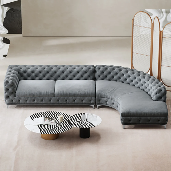 TOSCA - L-Shaped Curved Chester Sectional Sofa Upholstered