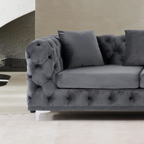 Featuring diamond tufting details, this sofa injects multifaceted texture into your overall design scheme. Velvet upholstery and seating padding with high-density foam adds maximum comfort for you when lounging after a long day. Elegant and stylish, this luxury sectional sofa will transform any living room into a luxurious lounge.
