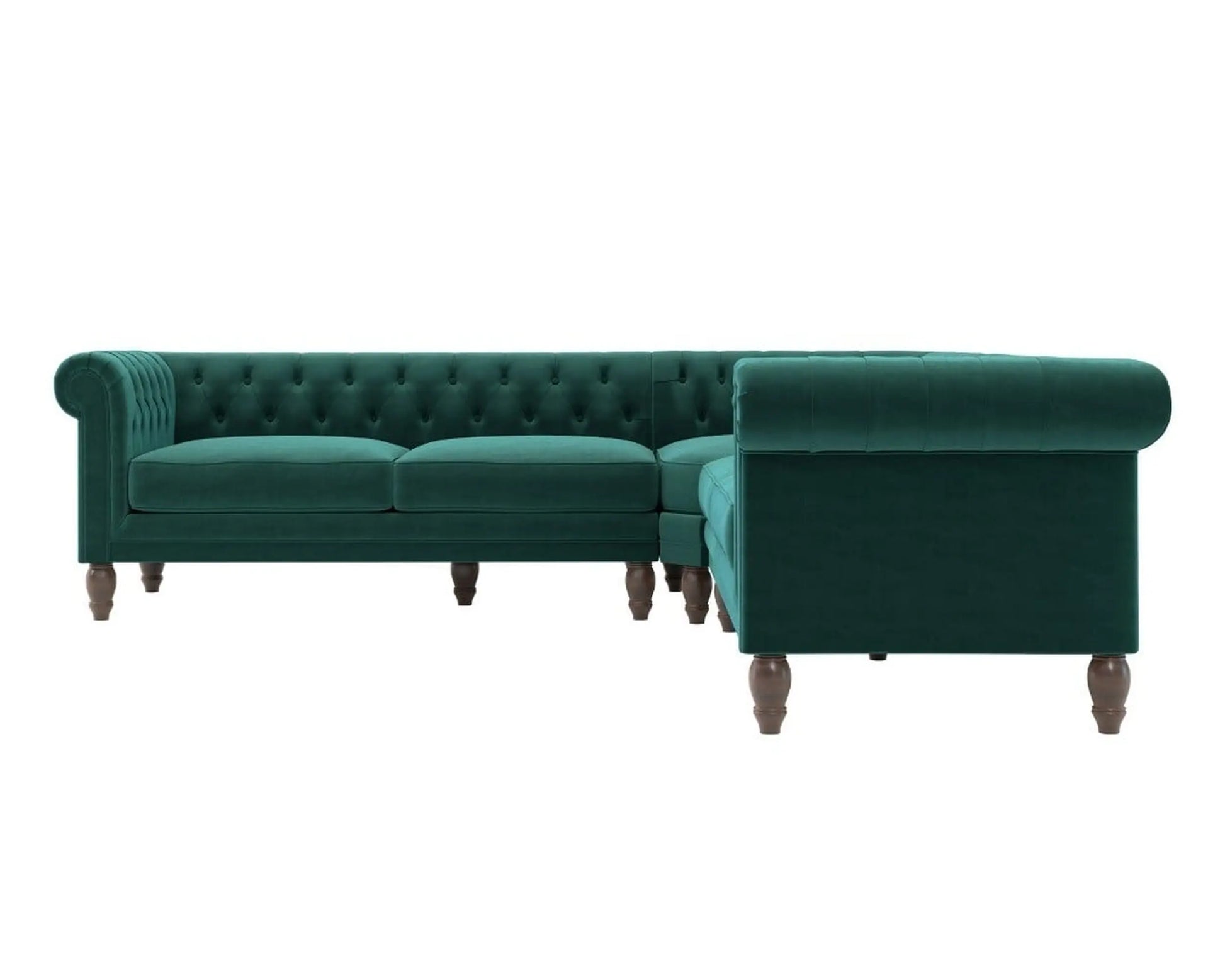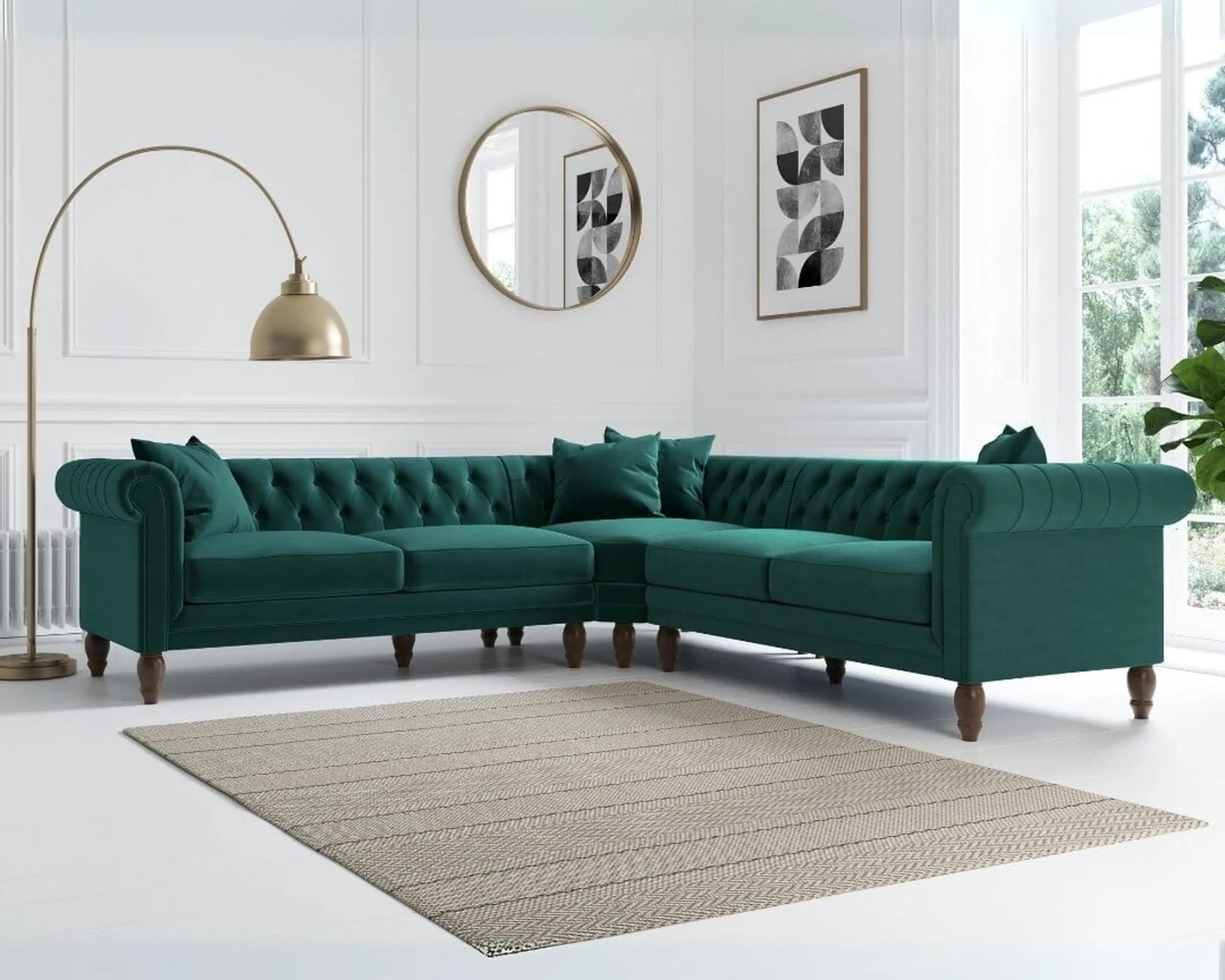 Product Enquiry: Medium Green Velvet Corner Sofa