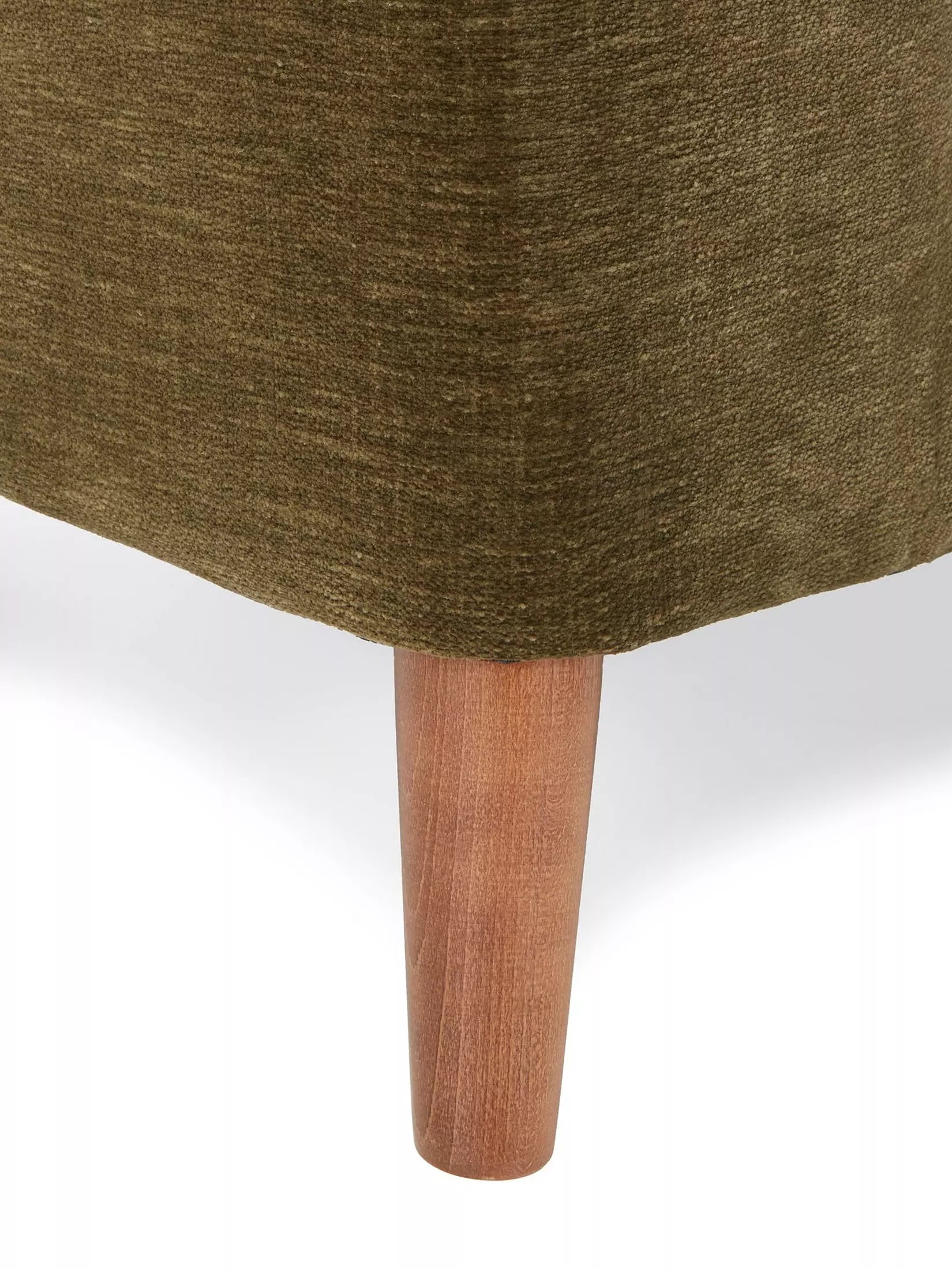 Inspired by the mid-century styles, this Astrid sofa is upholstered in a richly textured woven fabric and comes in the colour palette of olive, dark brown and grey. Looks-wise, it's all about the wide, chunky arms which curve inwards and are highlighted by piping detail, as well as the tapered wooden legs.