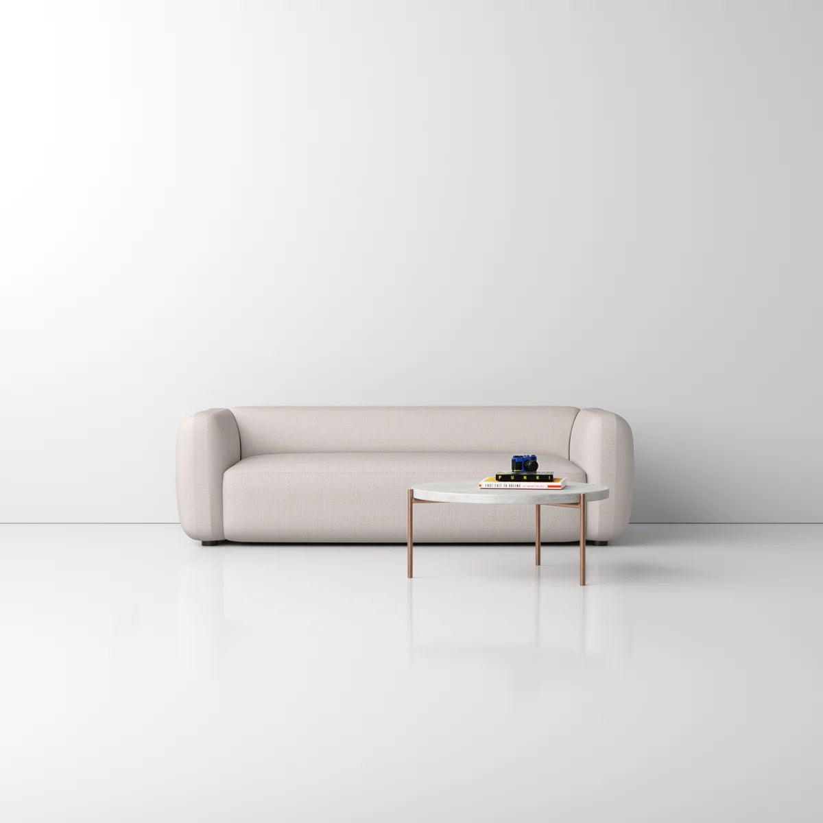 Exaggerated curves create a casual, inviting spot for lounging and gathering. Sofa features clean tailored upholstery in a durable performance fabric. Performance fabrics are specially created to withstand spills, stains, high traffic and wear, ensuring long-term comfort and unmatched durability.
