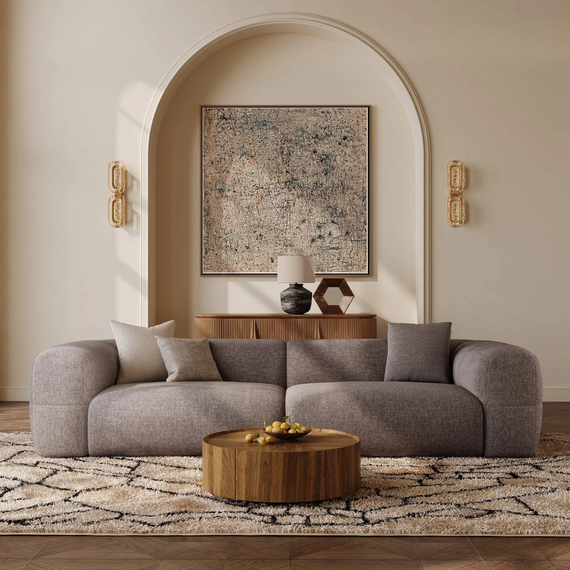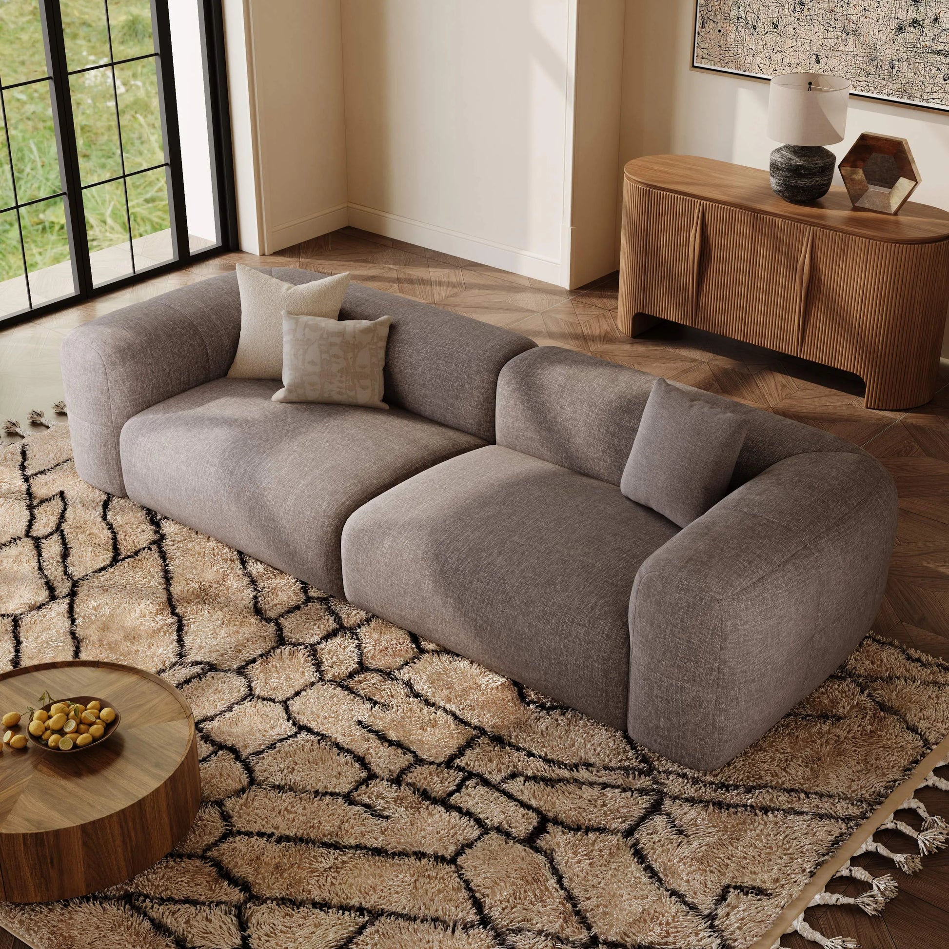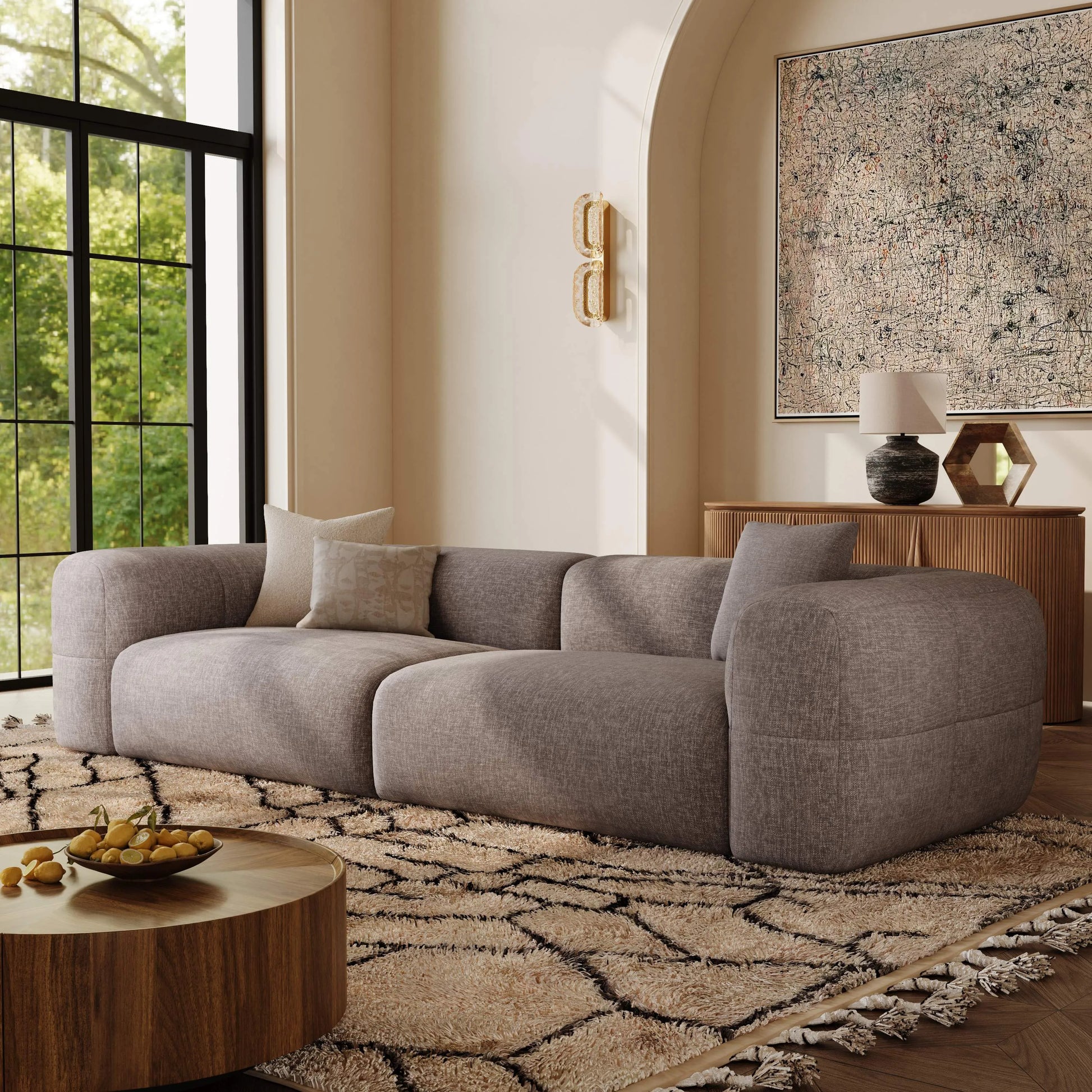 This upholstered sofa brings a modern flair to your living space with its ultra-plush cushions and back. It offers a welcoming texture that's ideal for your living room or family gathering area. The solid and engineered wood frame, paired with web suspension and sinuous springs, offers a cozy spot to lounge for your family. Wide curvy handle add a classic touch to the overall design.
