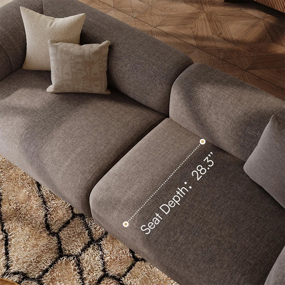 - 28 inch of seat depth provide you high comfort. Fabric of 500 GSM with abrasion rating above 50K and high tearing strength coupled with soft touch. High tensile webbing couple with coil spring and high density pure feather foam that provide soft bouncy seating experience.