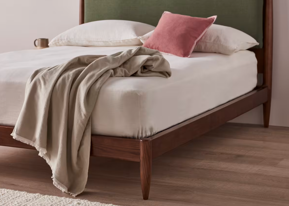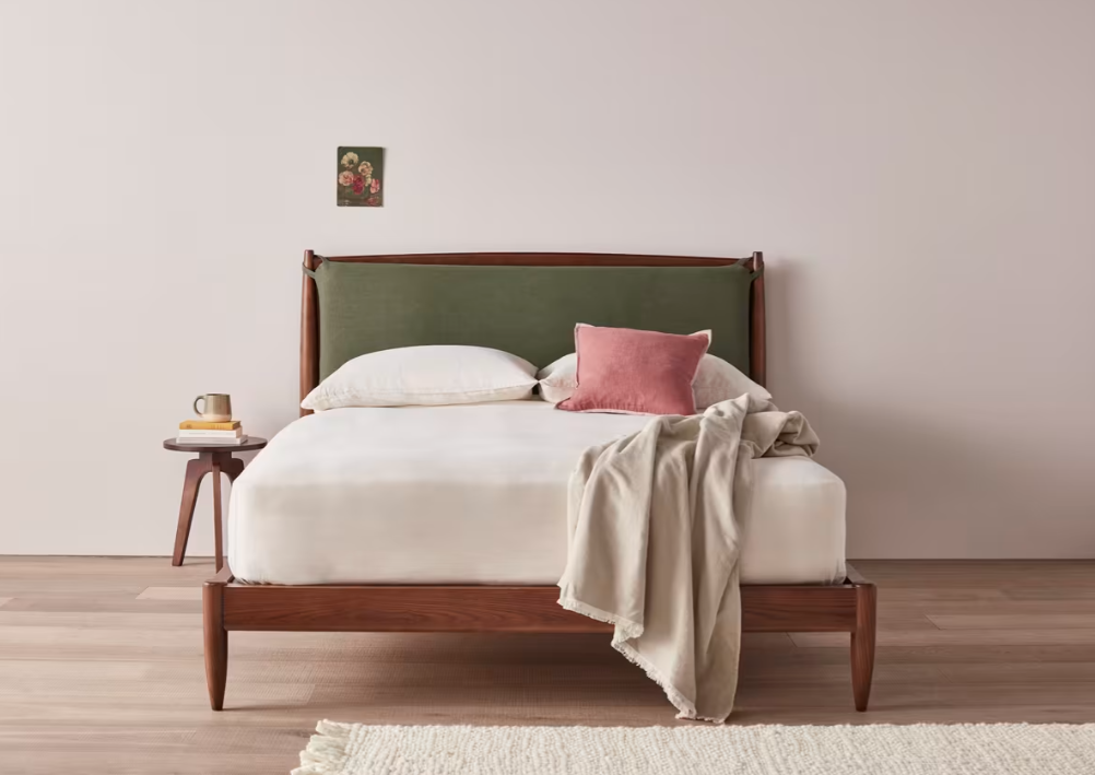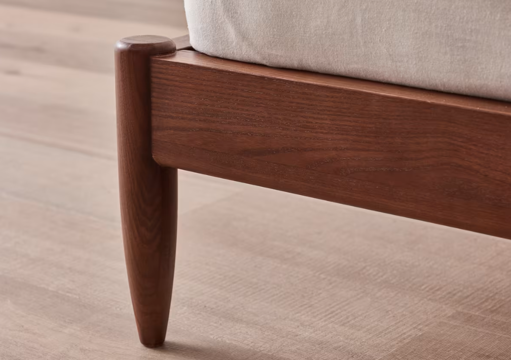 The dark ash gives this laid-back bed a lovely mid-century feel. Comes with a removable fabric headboard for extra squish.