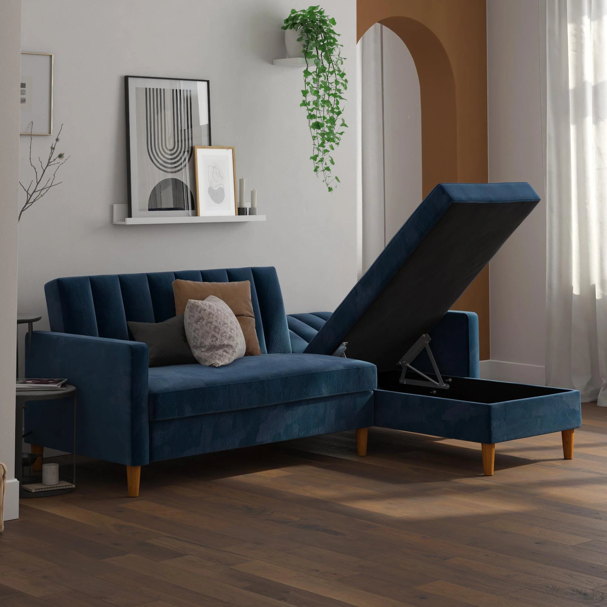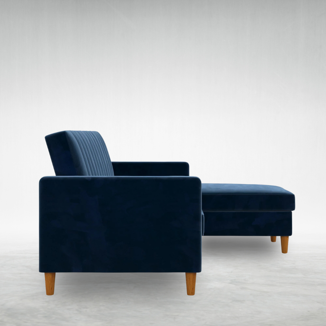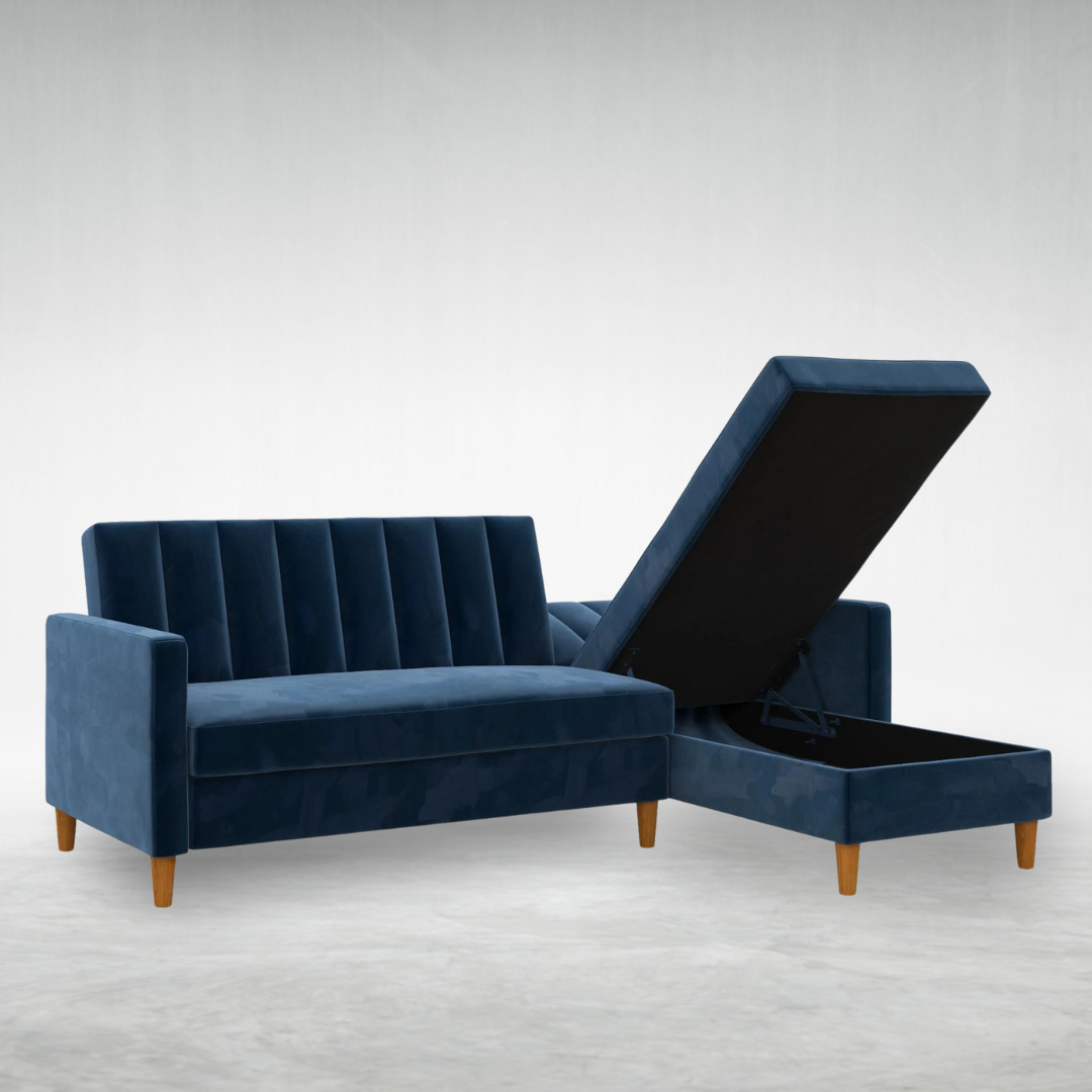 Product Enquiry: Reversible Sectional Futon with Storage, Reclining Couch, Navy Velvet