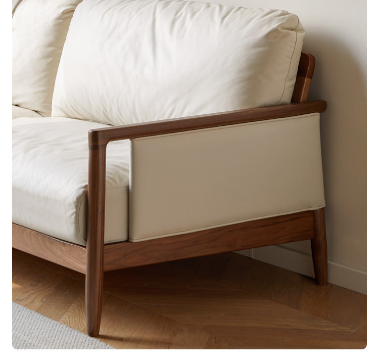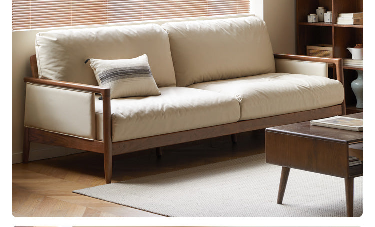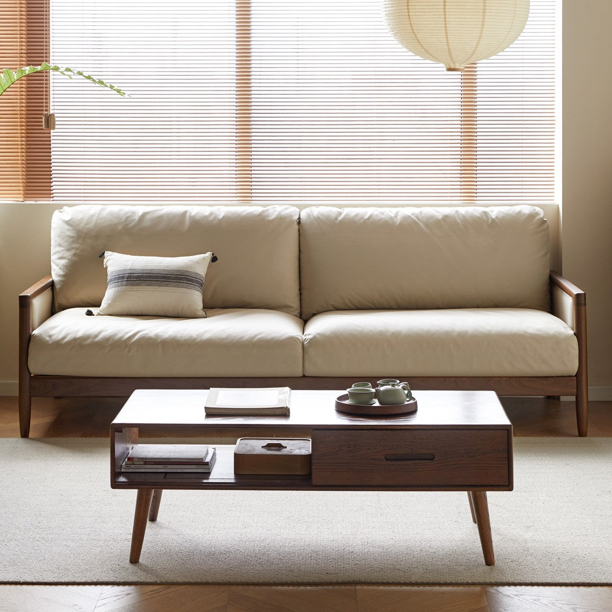 The black walnut sofa that young people also like, abandoning the complicated traditional Scandinavian design, the armrests use a combination of soft bags and solid wood as the main tone, especially the bright, elegant, smooth and smooth lines outline the simple and neat shape, making the living room unique.