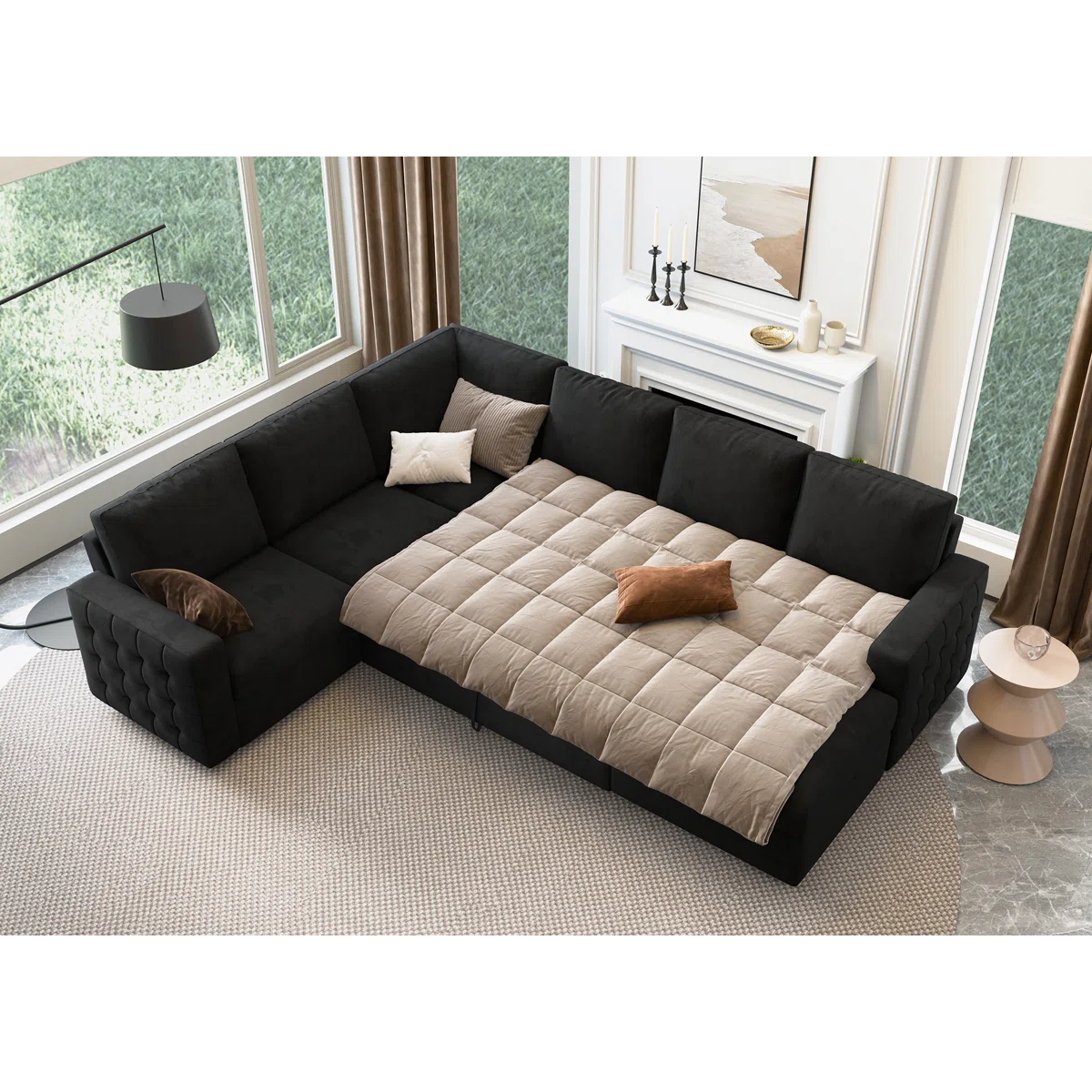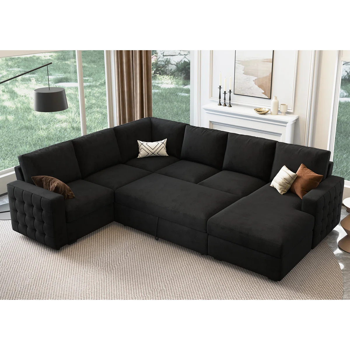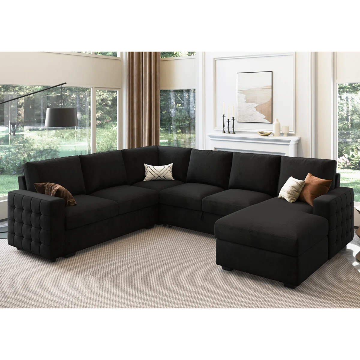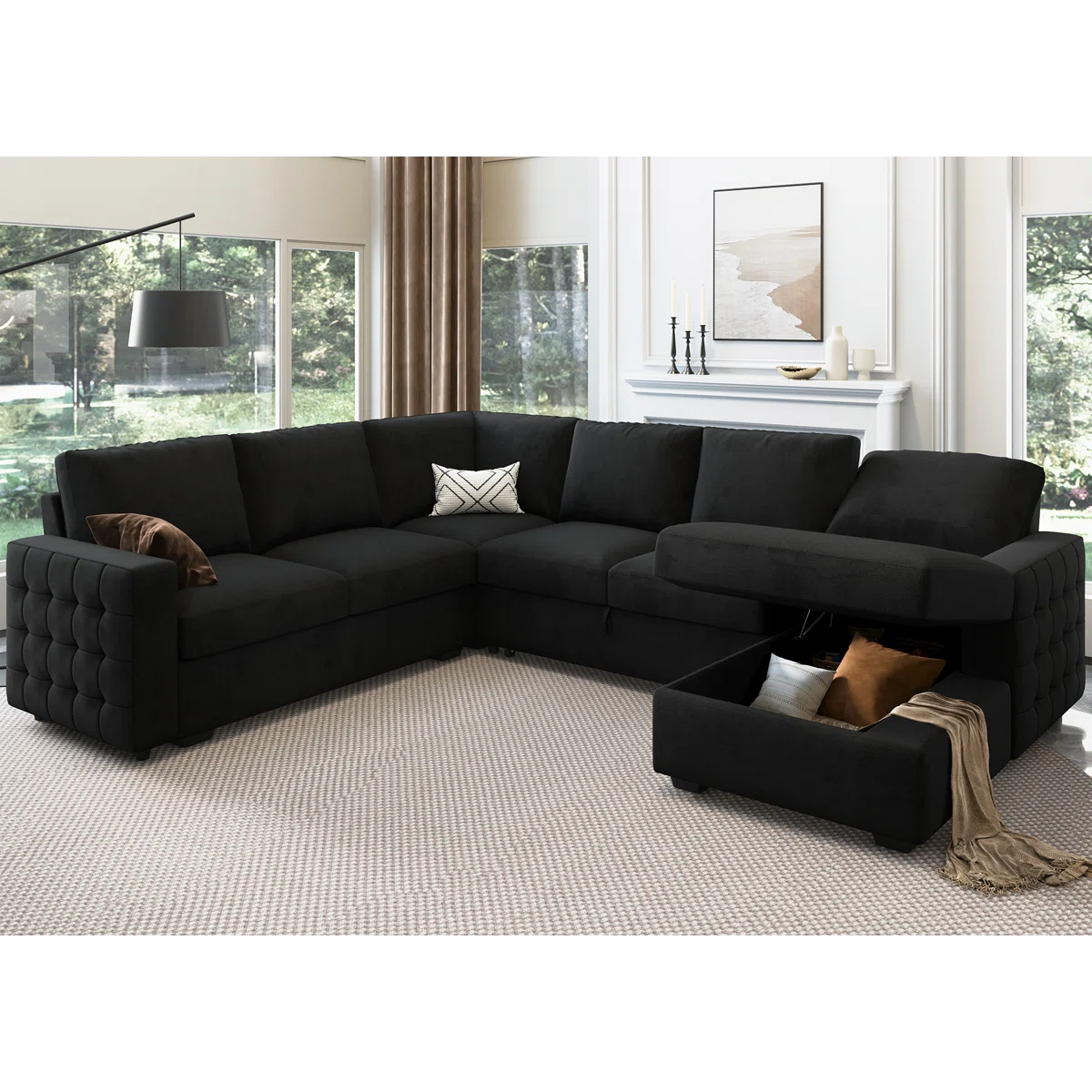 Chasidic U-Shaped Sectional Sofa Bed Pull Out Sleeper Couch With Storage Chaise