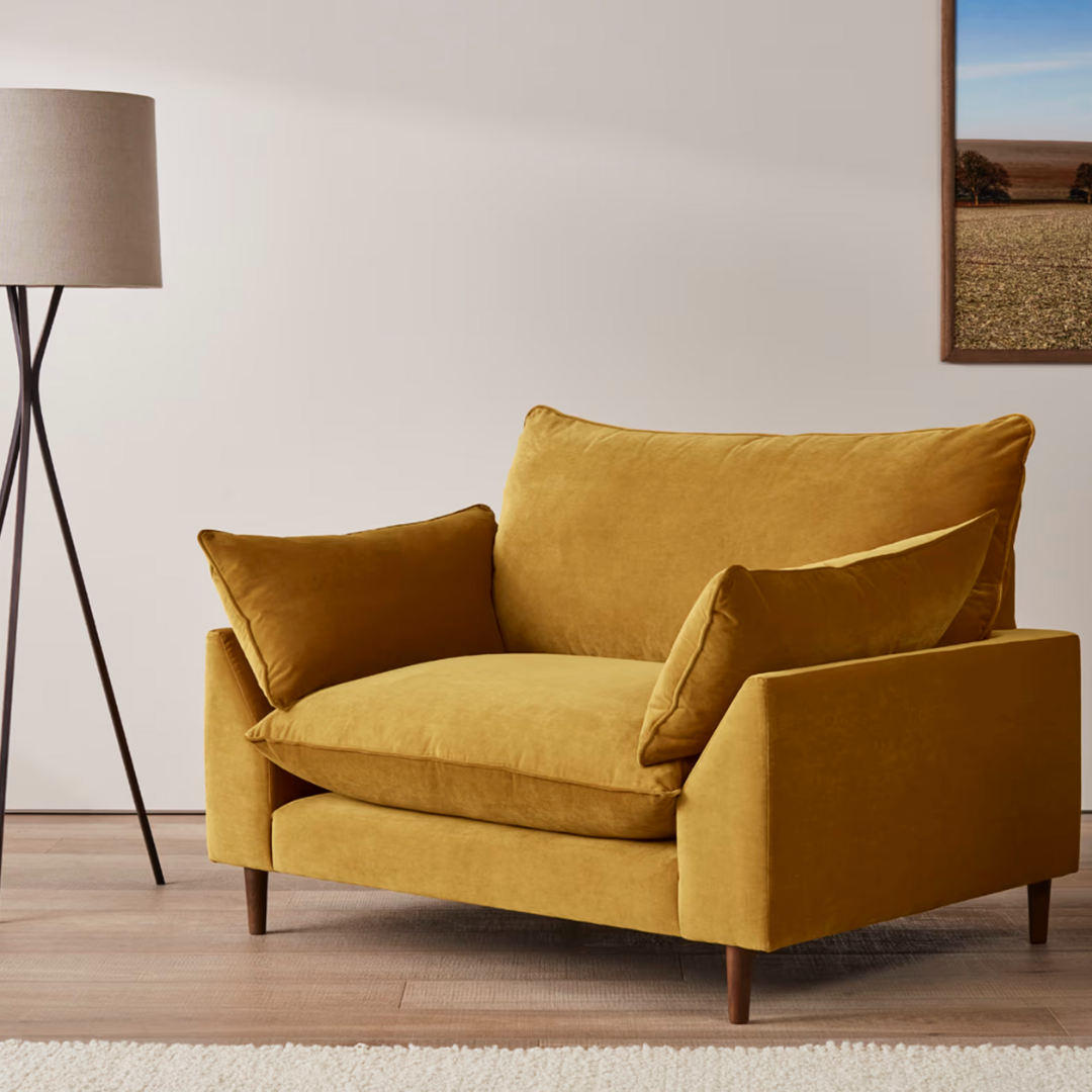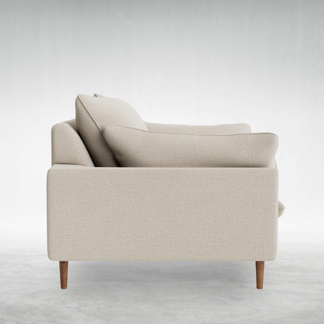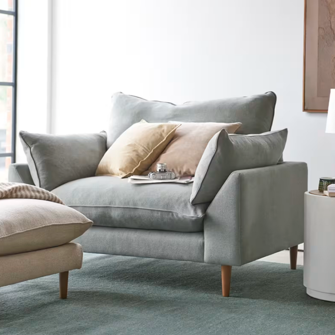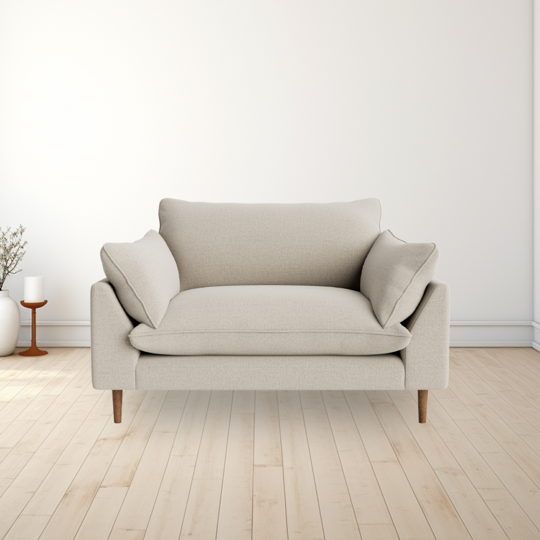 Squishy. Good-looking. And with mid-century dark wood legs. Three reasons why our new Dawdler love seat is a bit of alright.