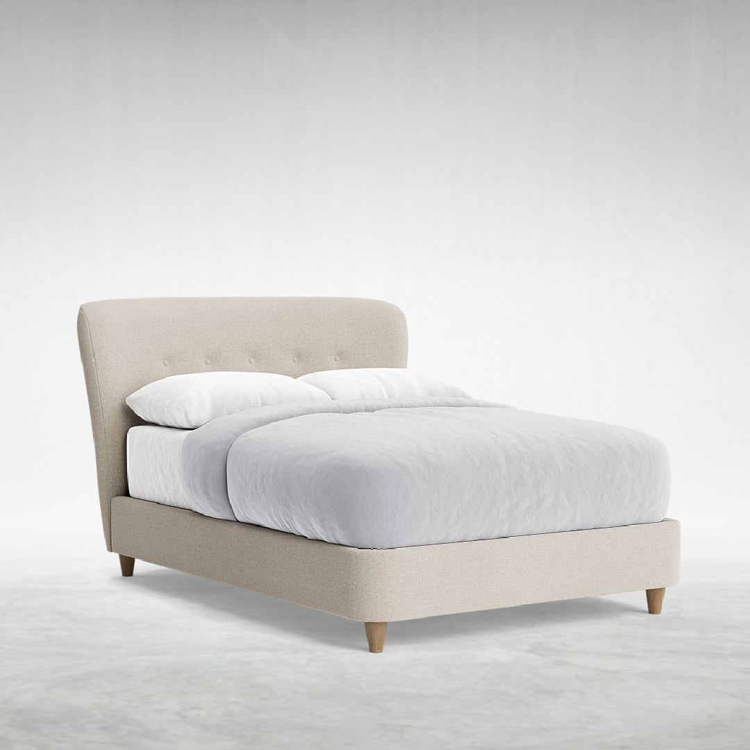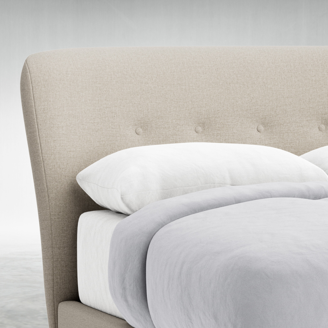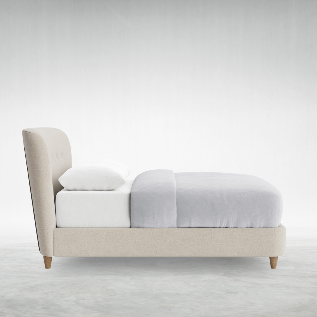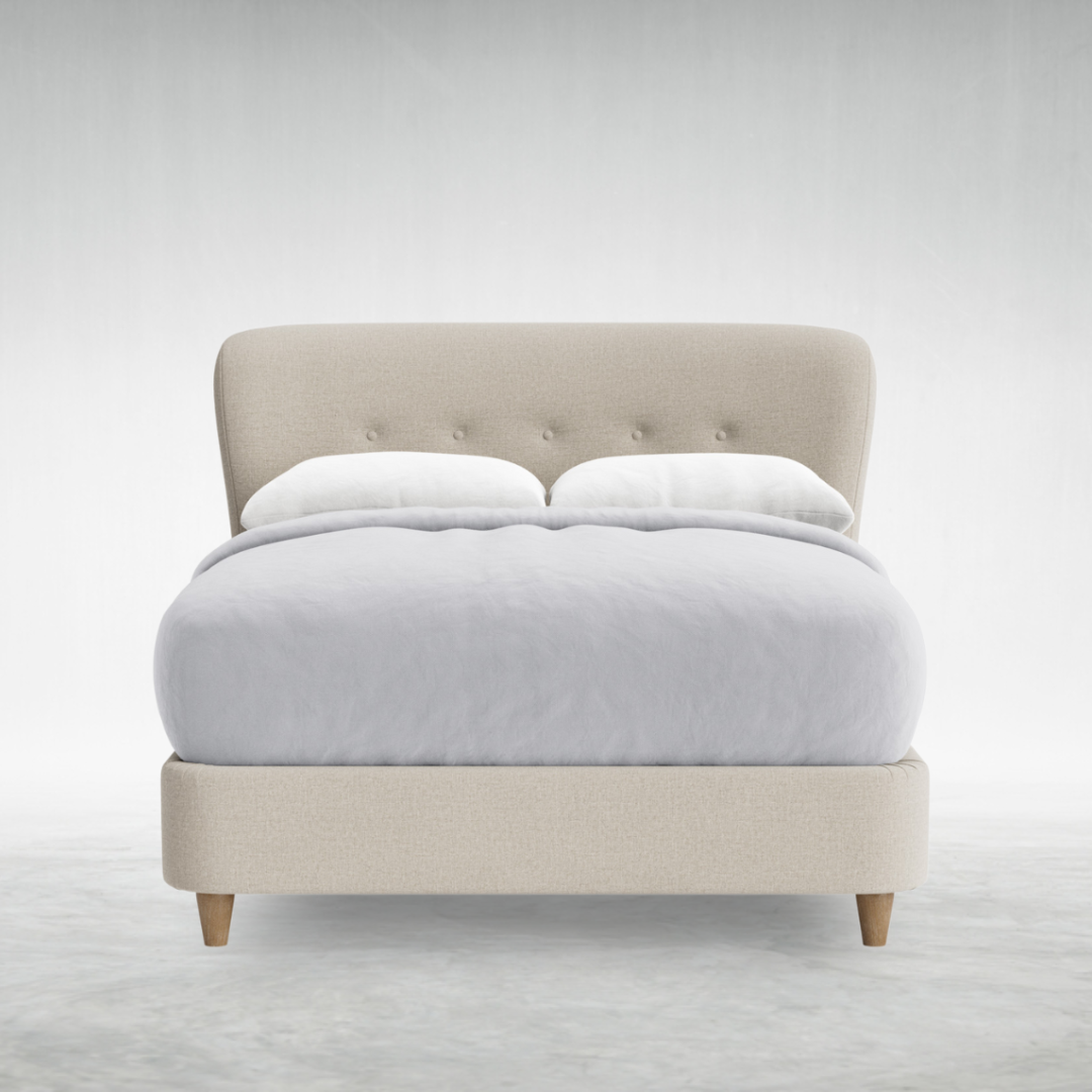 We designed this bed with 1950s Berlin in mind. Its curved headboard and solid oak legs make it a retro dream come true.