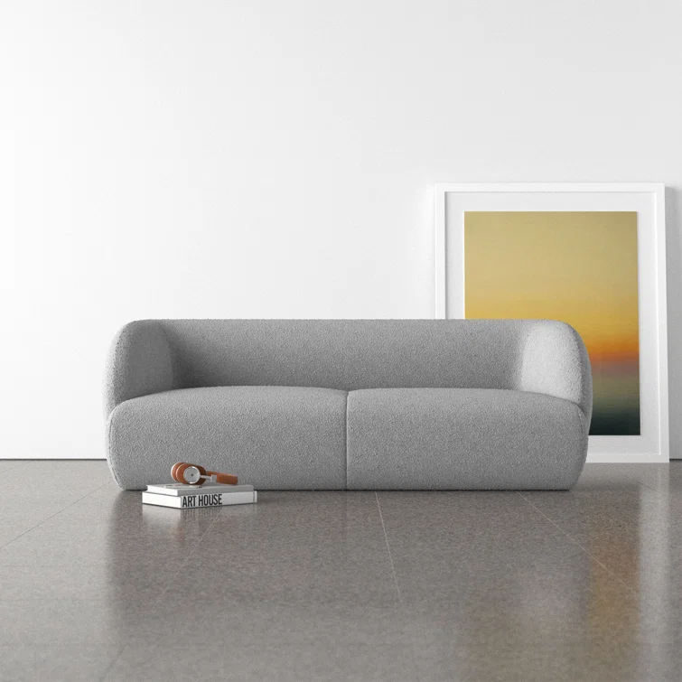 Defined by a simple rounded silhouette, this sofa grounds your space in elevated + inviting modern style. The frame is crafted from sturdy kiln-dried hardwood, and the design features a tight, supportive back and subtle, sloping arms. A single cushion seat is wrapped in stain-resistant performance upholstery.